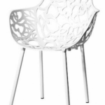 Beautiful armchair with openwork flower back made from steel powder coated and polymer. Perfect to indoor and outdoor use.