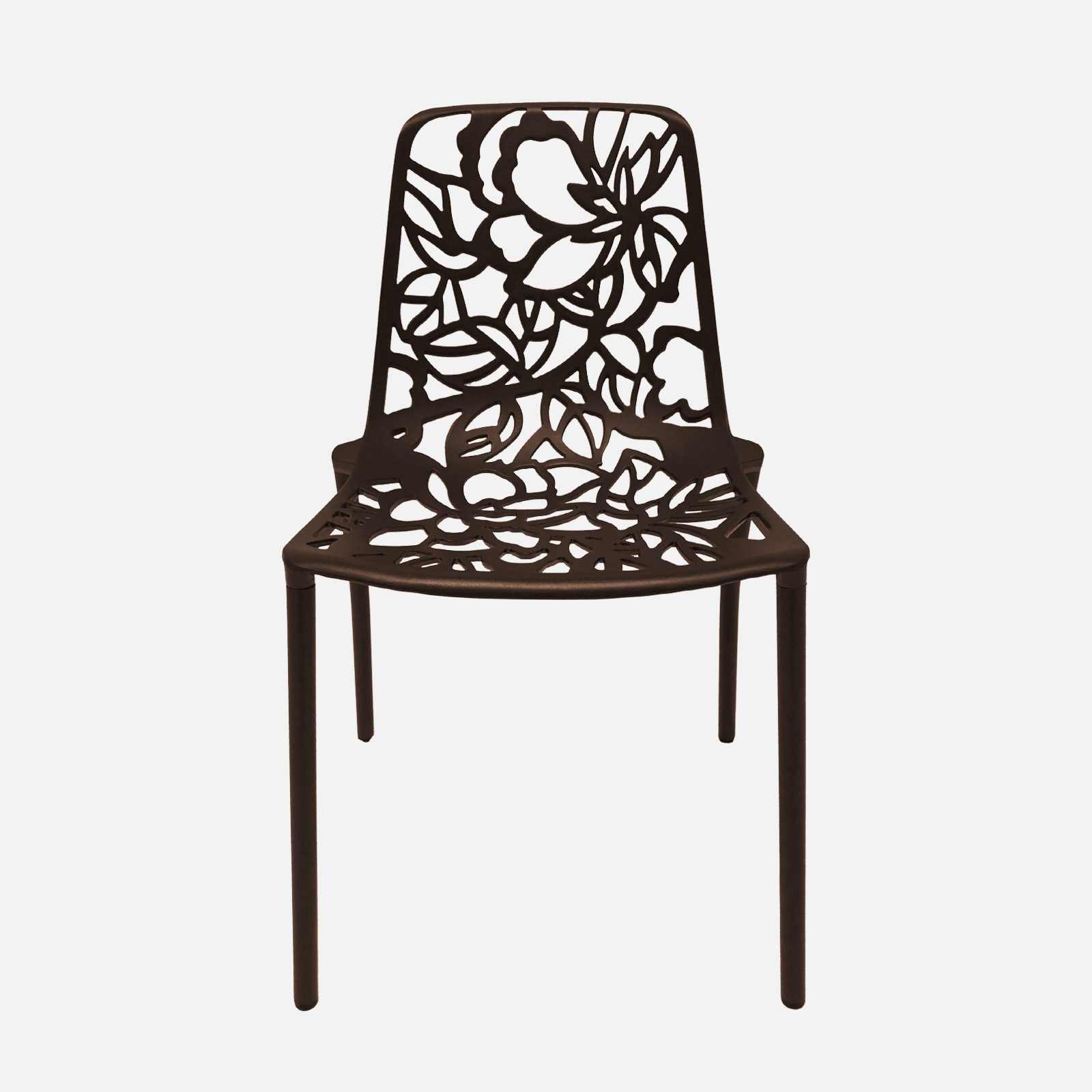 Beautiful chair with openwork flower back made from aluminium and polymer. Perfect to indoor and outdoor use.