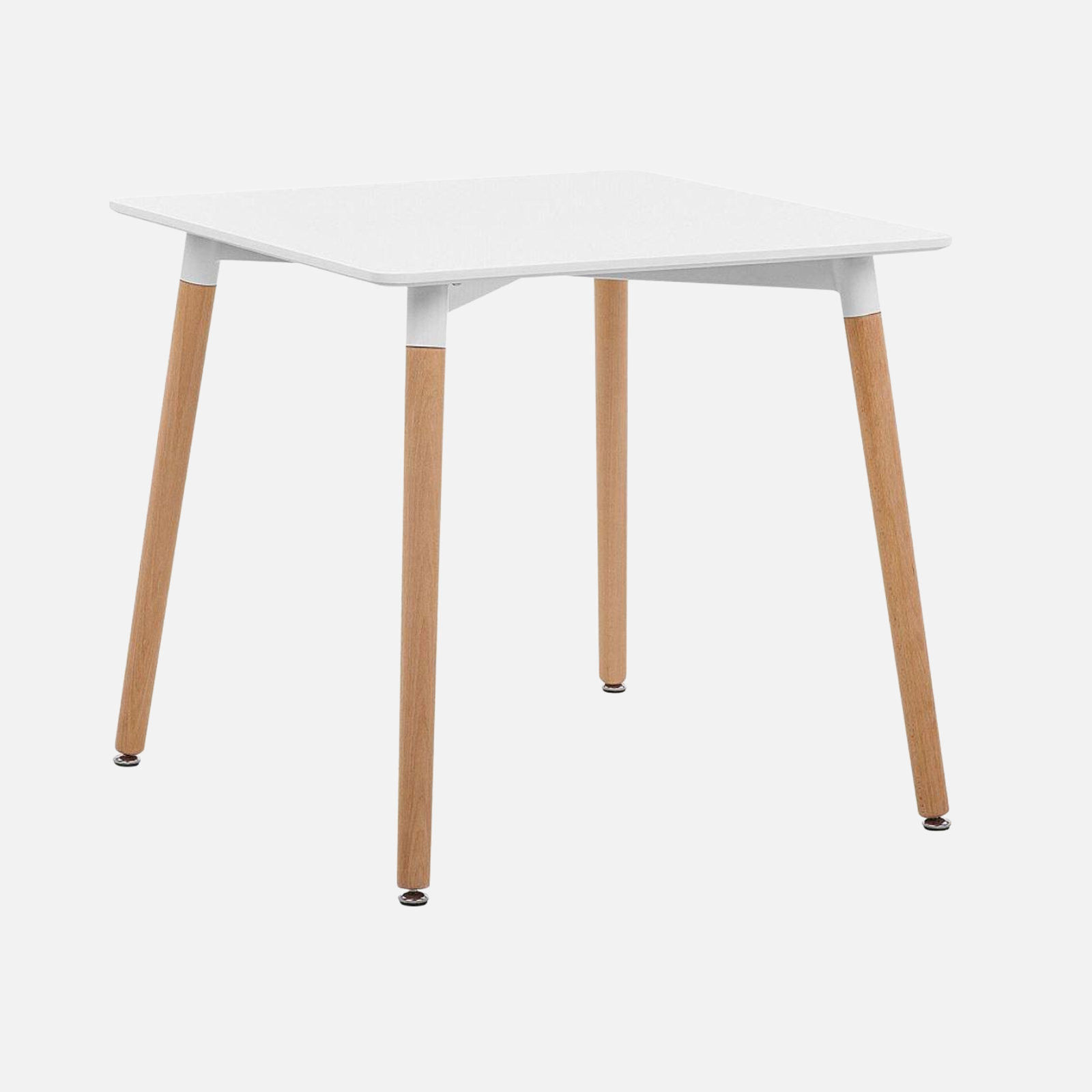 Scandinavian design dining table with construction based on thin, slender legs made of beach wood and engineered wood top, makes any space more cosy.