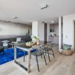 Sleek and minimalistic high table with a round black top and a sturdy single pedestal base. Its elevated height makes it perfect for bars, lounges, or casual gatherings, blending modern style with practicality in a space-saving design.
