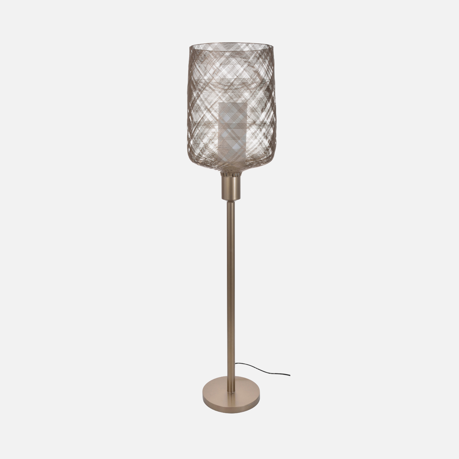 The poetic and aesthetic spirit of this floor lamp will be perfect choice for every interior. Lamp made from semi-transparent tartan pattern and hand-woven metal wire.