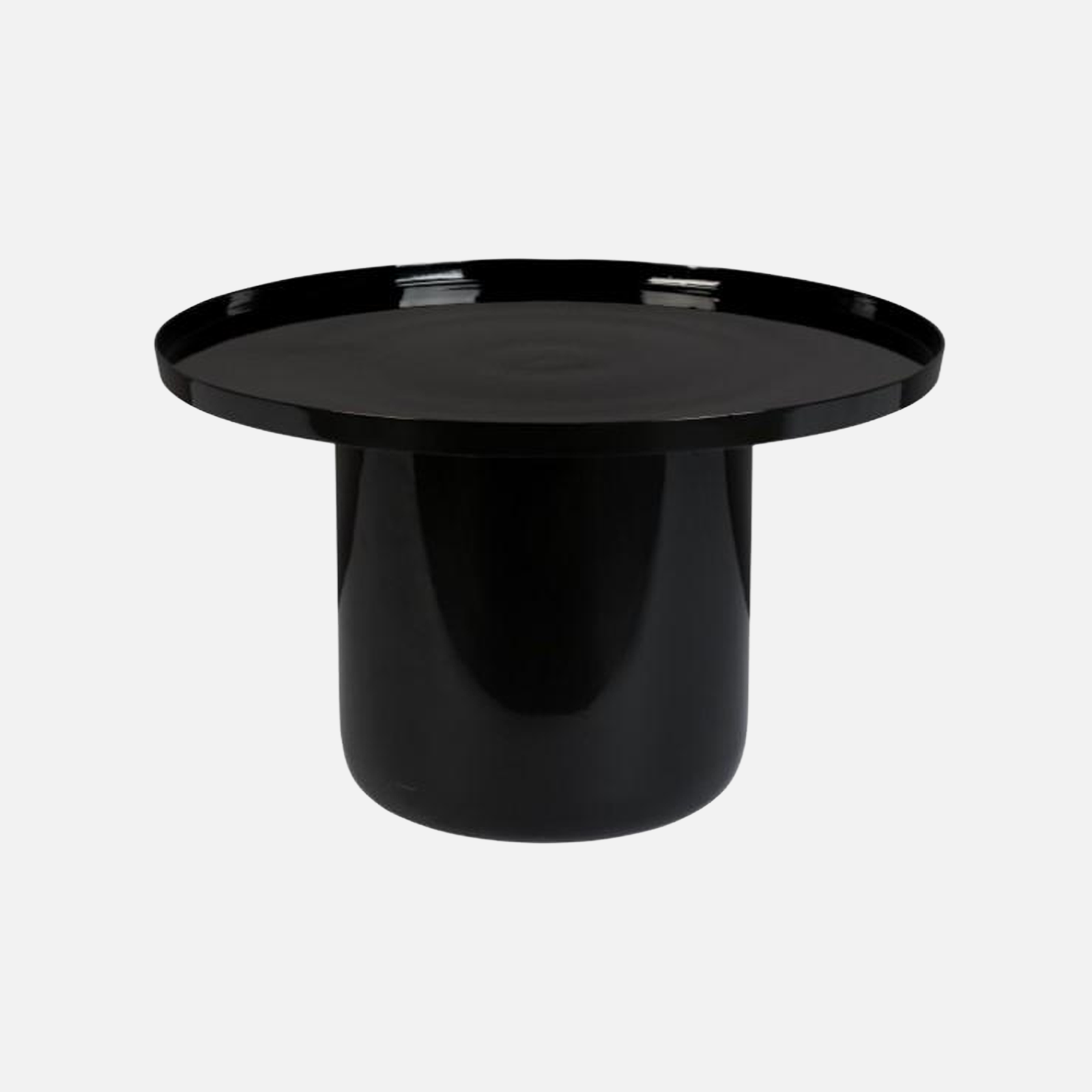 Pretty and shiny coffee table made out of enamelled metal with features a broad. sturdy foot.