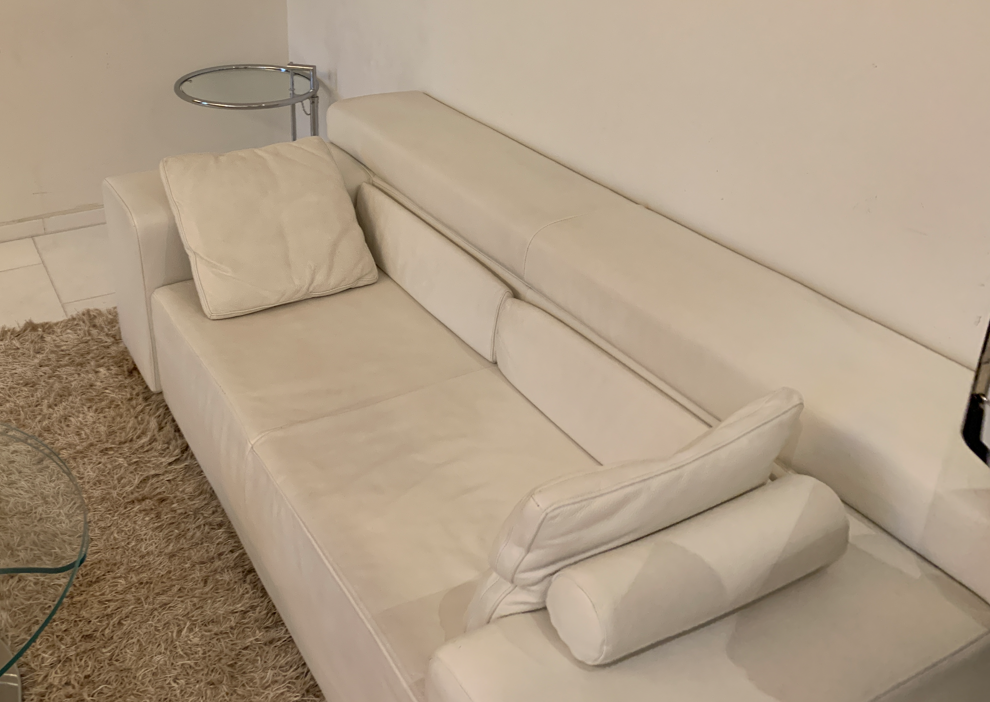 This sculptural Lounge Sofa with its bold curves and asymmetrical silhouette makes a true design statement. Upholstered in sleek off-white leather, it combines modern minimalism with artistic flair, perfect for contemporary interiors.