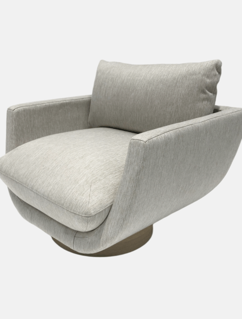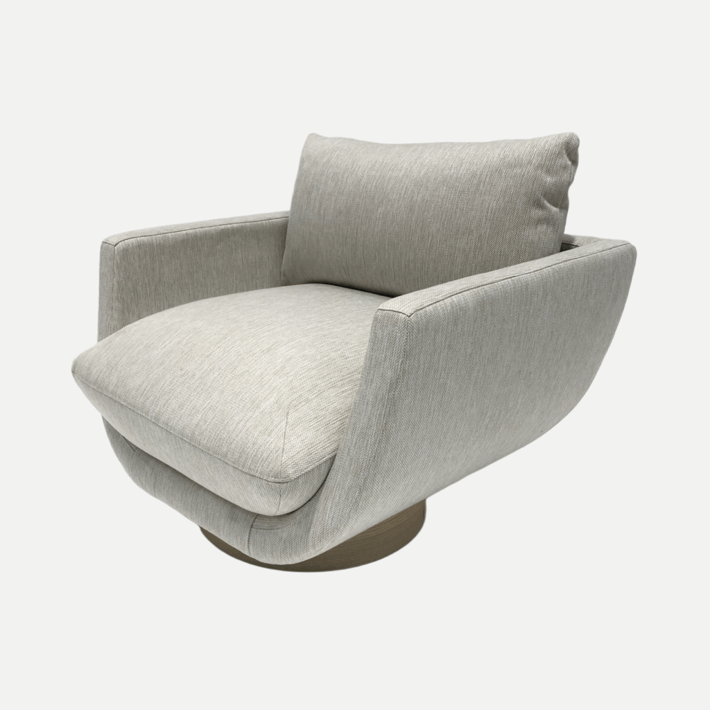 Stilvoller Sessel mit schöner Muschelform, gefertigt aus massivem Eichenholzgestell und weichem, pflegeleichtem Bezug.