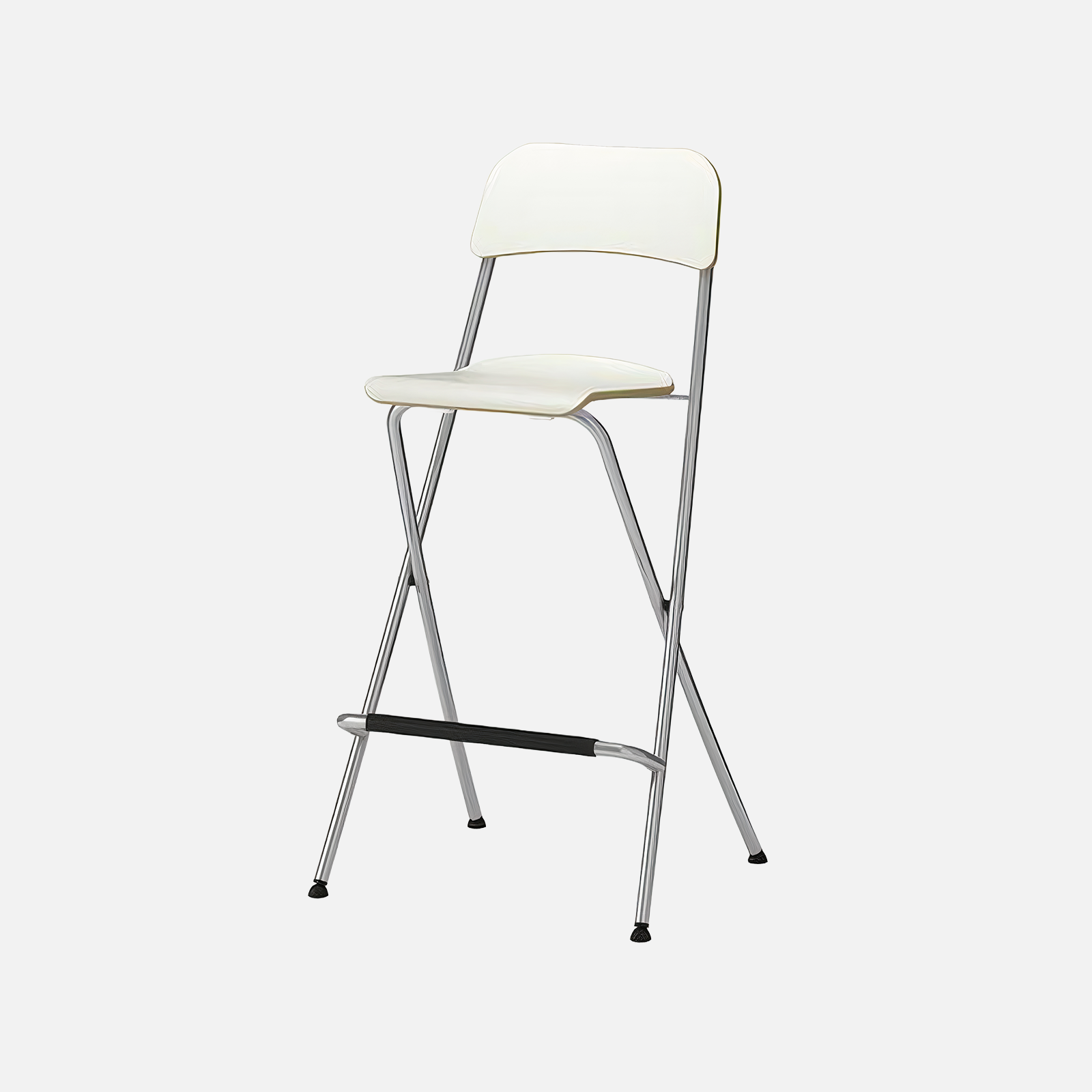 Einfach zusammenklappbarer, leicht zu verstauender Barhocker aus Eichenfurnier und Stahl. Die Kunststofffüße sorgen für einen stabilen Stand des Hockers und verringern das Risiko von Druckstellen auf weichen Böden.