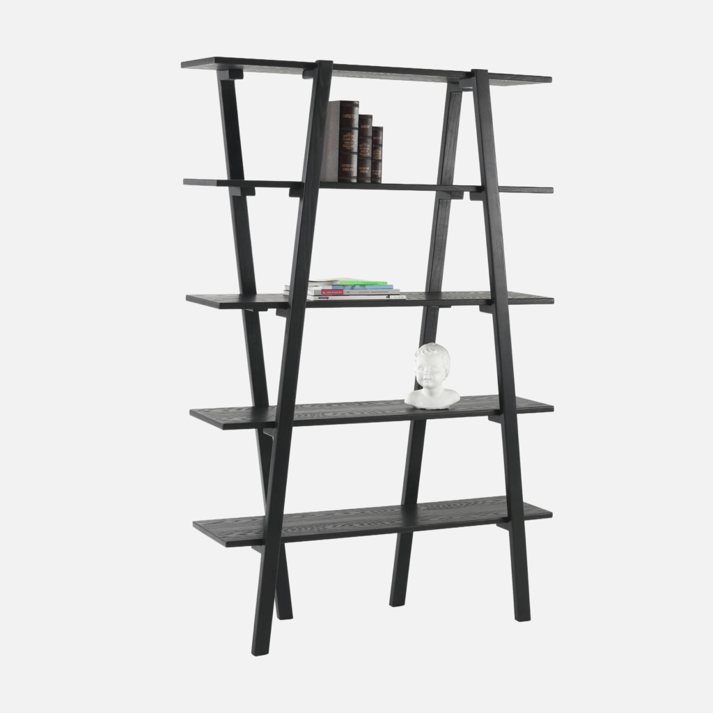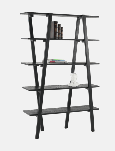 Schönes, einfaches Regal mit stilvollen abgerundeten Seiten aus Holz in Dunkelbraun.