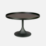 Schöner und moderner Couchtisch mit schwarz lackierter Eichenfurnier-Tischplatte und schwarzem pulverbeschichtetem Stahlbein.