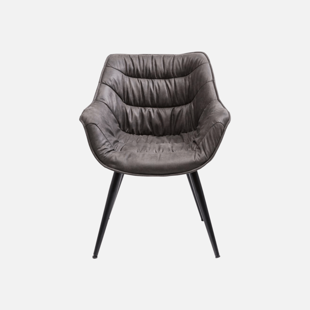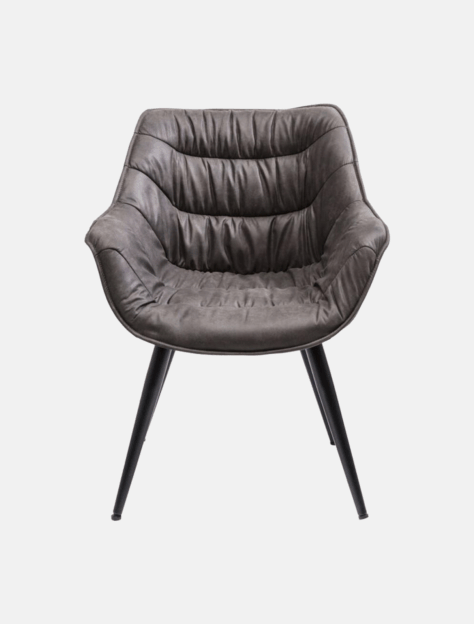 Dunkelgrauer Lederstuhl mit luxuriösem Sitzkomfort und ansprechendem Design. Die zerknitterte Optik des Bezugs ist sowohl lässig als auch elegant.
