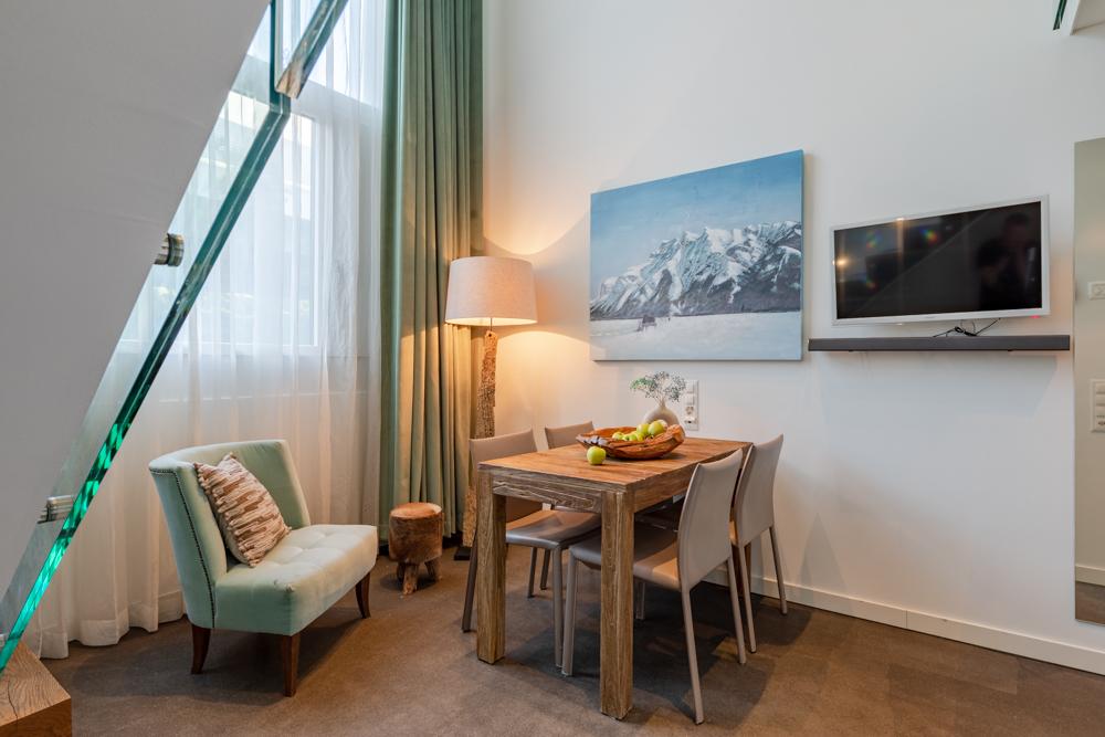 Esstisch im skandinavischen Design mit einer Konstruktion aus dünnen, schlanken Beinen aus Buchenholz und einer Tischplatte aus Holzwerkstoff, der jeden Raum gemütlicher macht.