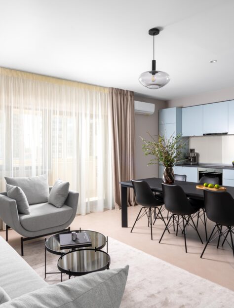 Eleganter und schöner Couchtisch aus Chromgestell und Glasplatte. Der Vorteil dieses Tisches ist die verstellbare Höhe von 67 cm bis 92 cm..