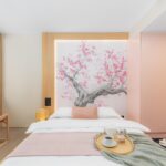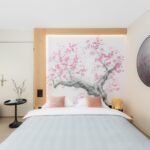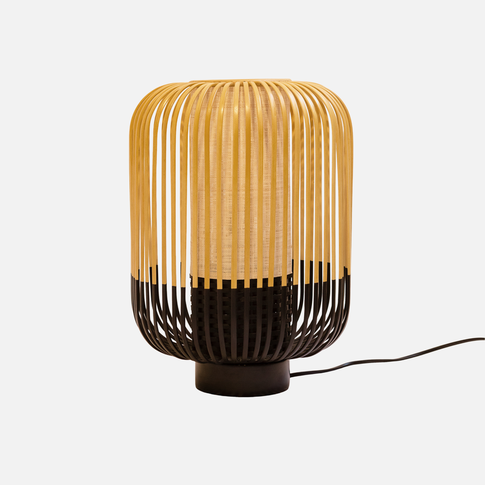 Fabelhafte Lampe aus Bambusstäben, die zarte Schatten an die Wand wirft, schafft einen einzigartigen Einrichtungscharakter. Natürliche Materialien passen perfekt zu trendigem und modernem Dekor.